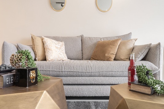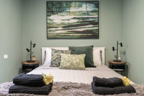 There are 2 bedroom with 2 bathroom. One comfortable sofa bed in the living room and another one person sofa as well. This spacious apartment can accommodate 7 person.