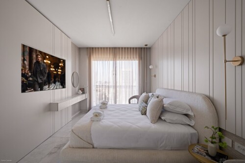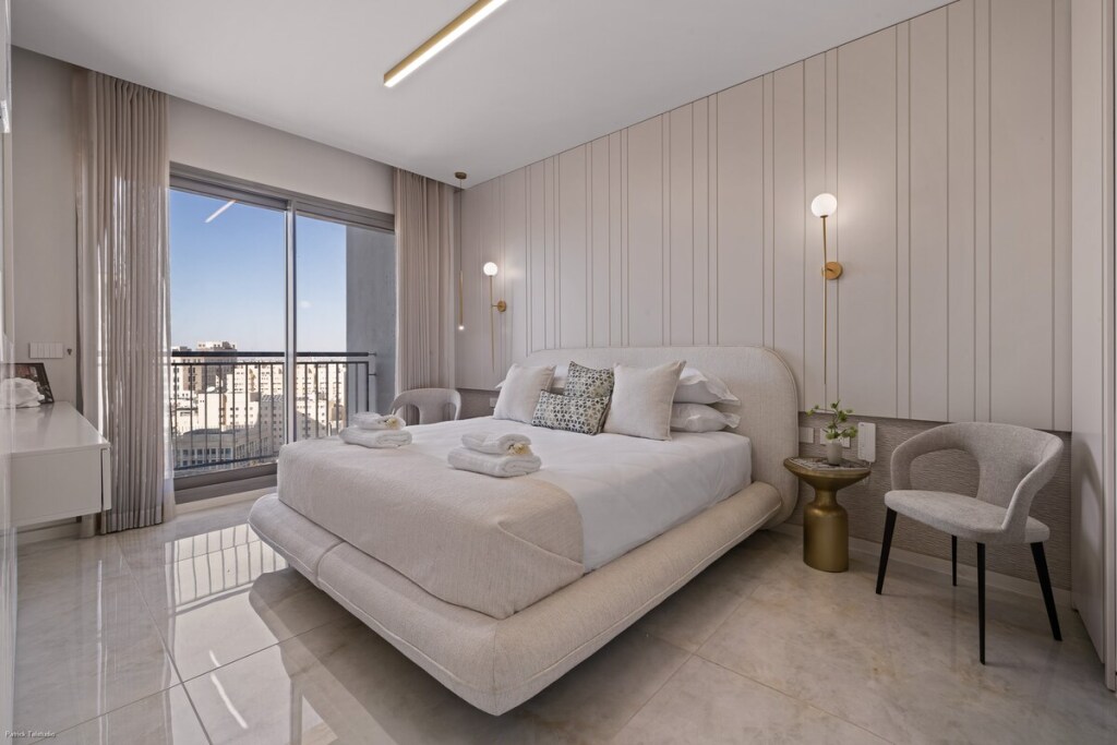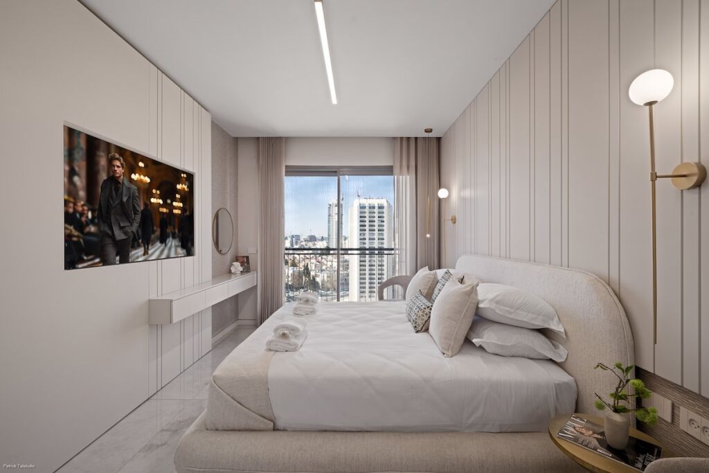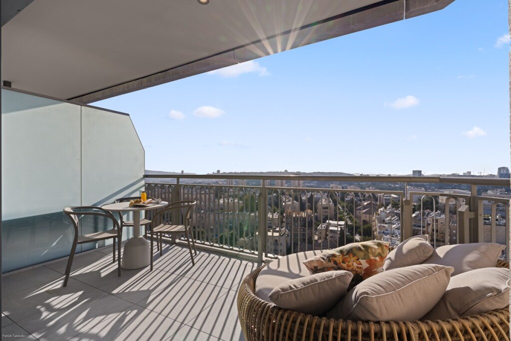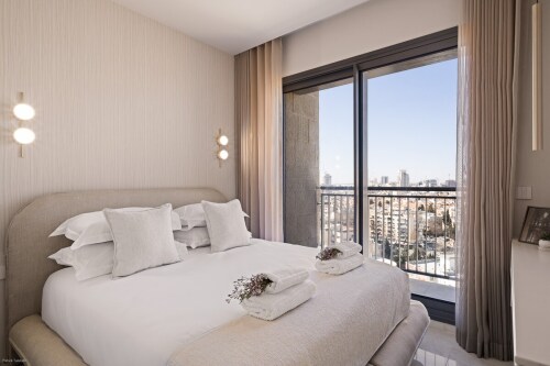 Welcome to this exceptional apartment located in the prestigious “Jerusalem Spirit” luxury residence. Designed for comfort and elegance, this 2-bedroom, 2-bathroom space is perfect for an unforgettable stay. •Elegant and modern design with high-end finishes •Two spacious bedrooms with premium bedding •Two luxurious bathrooms, fully equipped •Modern fully equipped kitchen for your convenience •Bright and comfortable living room •Private balcony with stunning views (floor 16)