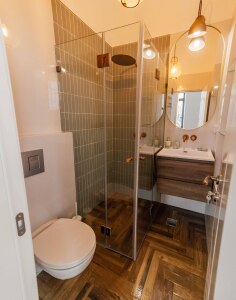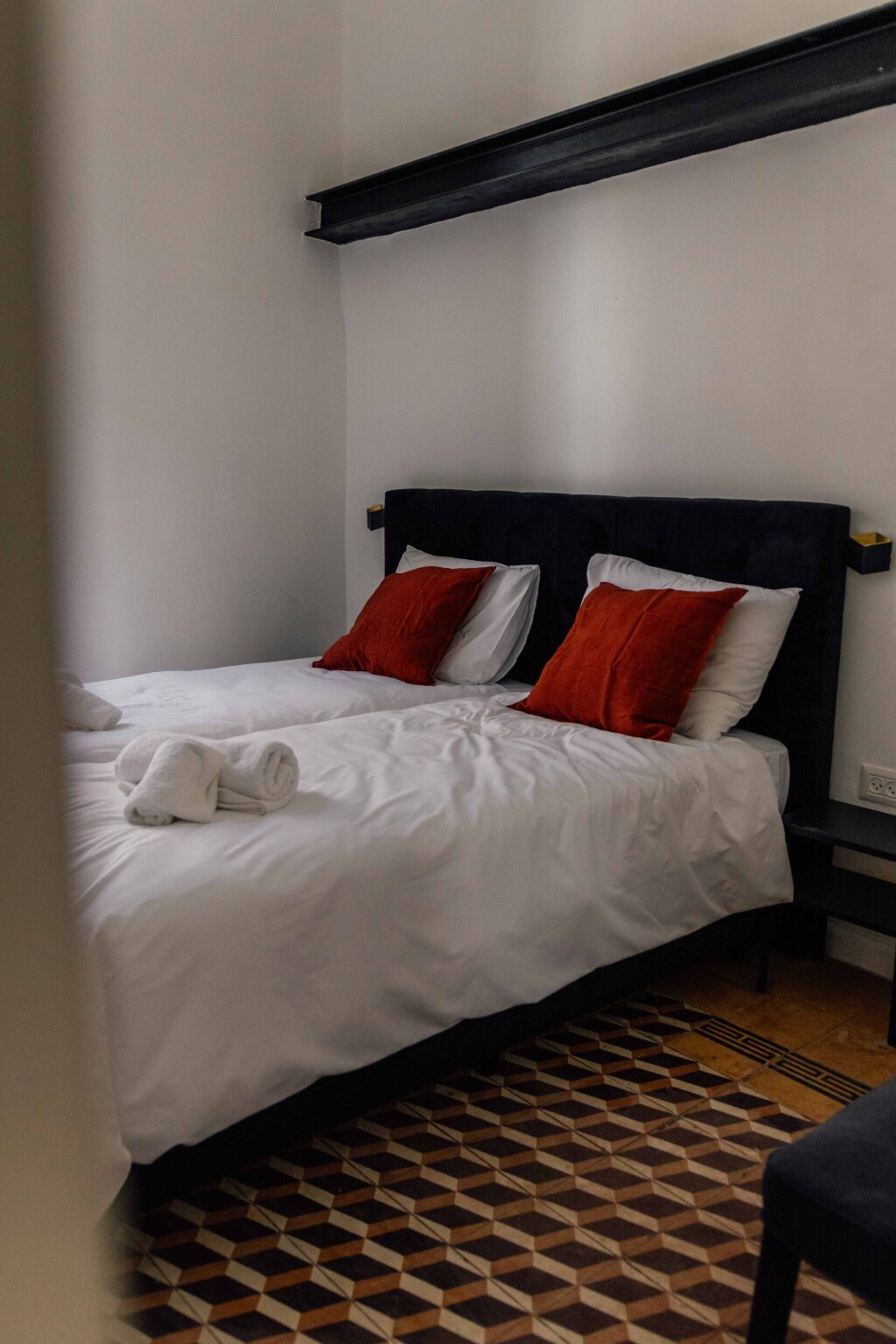 High ceiling of 4,5 meters. Each room has a lot of space. Every beds can be split into 2 single one. High quality of beds and beddings.
